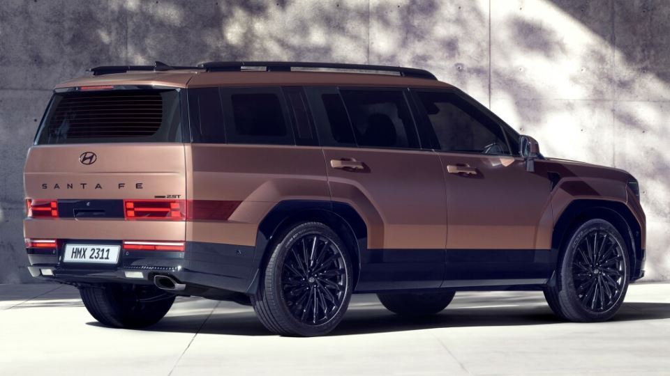 چراغهای بزرگ و باریک عقب، در ارتفاع پایین قرار گرفته و تاحدی از نمونههای متداول امروزی متمایز است. نام Santa Fe هم در بالای چراغها قرار گرفته درحالیکه در صندوق با ابعادی بزرگ طراحی شده است.