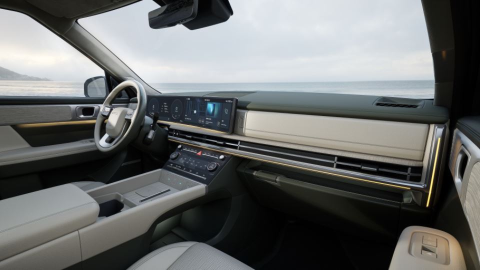 طراحی کابین هیوندای سانتافه از روند امروزی صنعت خودرو پیروی نموده و مواردی شامل شارژر بیسیم، دریچه تهویه سرتاسری و دو نمایشگر متصل و خمیده را به نمایش گذاشته است. البته طراحان هیوندای با قرار دادن تعدادی دکمه و همچنین بخش مجزا برای سیستم تهویه، سعی داشتهاند سلیقه طیف بیشتری از مشتریان را راضی کنند.