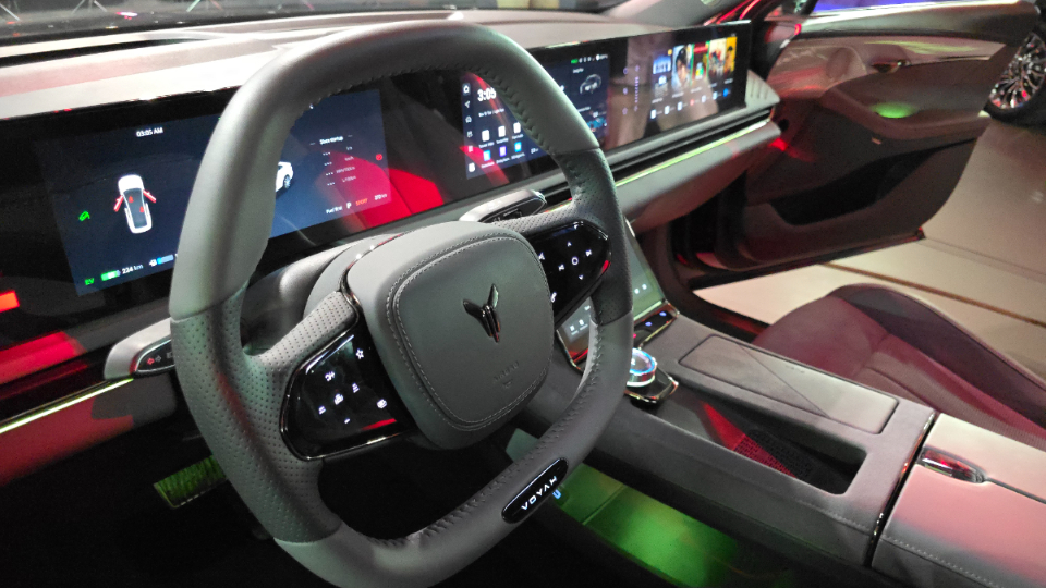 در کابین وویا پشن، سه نمایشگر 12.3 اینچی در کنار یکدیگر قرار گرفتهاند، که از دستیار صوتی و فرامین حرکتی پشتیبانی میکند. سیستم صوتی با 14 بلندگو، سقف پانوراما، گرمکن، تهویه و ماساژور برای صندلیها و نمایشگر 7 اینچی برای سرنشینان عقب، از دیگر امکانات رفاهی این خودرو به شمار میآید.