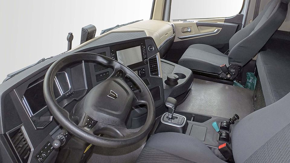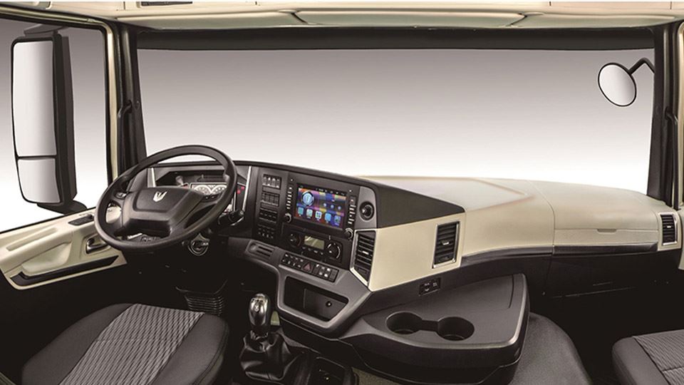 داخل اتاق با کشنده C&C U480 نیوفیس یکی بوده و با مدلهای قبلی، به کلی متفاوت است. داشبورد به وضوح از مرسدس بنز آکتروس الهام گرفته که امروزه میتوان این قضیه را در کابین کشنده دیما نیز مشاهده کرد. داشبورد، طراحی خوبی دارد و کار با ادوات و دکمهها نیز خوب و راحت است. البته یک ایراد به این کابین وارد است که با داشتن سقف بلند، کف کابین، تخت نبوده و ارتفاع تونل موتور، نسبتا بالاست.
