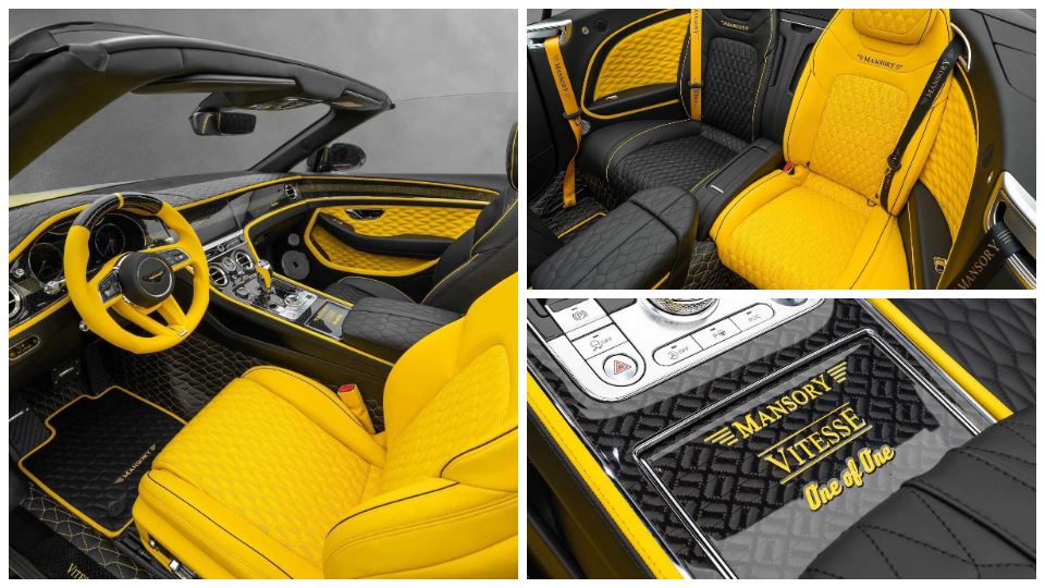 ترکیب رنگی دوتایی بدنه به فضای کابین هم سرایت کرده است و در این بخش نیز با رنگهای مشکی و زرد مواجه هستیم که البته به روشی نامتداول، کابین را تزئین کرده است. پلاک One of One روی کنسول، بر منحصربهفرد بودن ویتس کانتیننتال GTC، تاکید دارد.