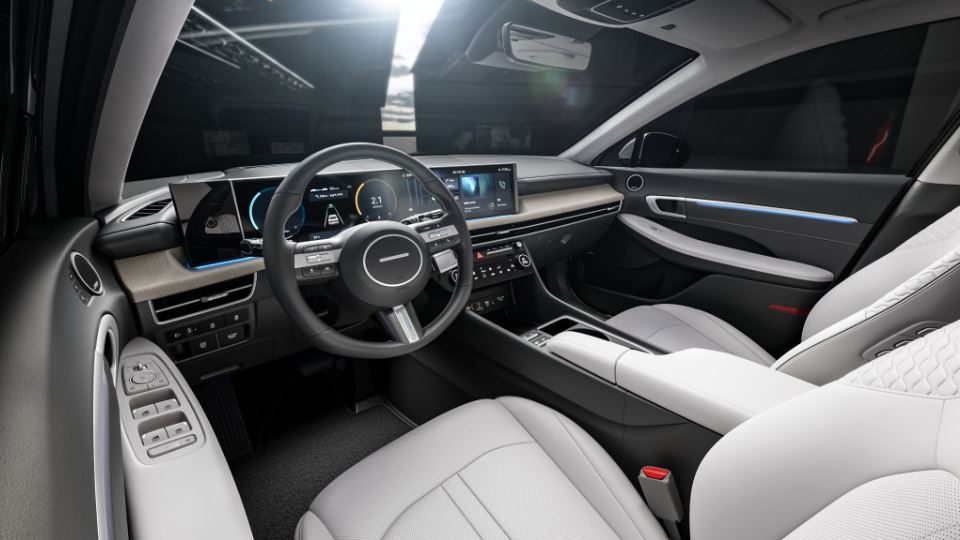 فضای کابین هیوندای سوناتا با تغییرات به مراتب اساسیتری همراه شده است. این خودرو به عنوان نخستین محصول هیوندای، به طراحی خمیده نمایشگرها مزین شده است، که مشابه آن را قبلا در محصولات بامو مشاهده کردهایم.
