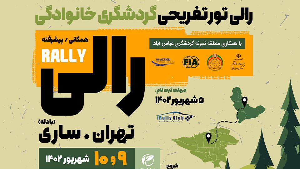 مرداد 1402: به گزارش کانون جهانگردی و اتومبیلرانی، رالی تفریحی تهران ساری، روز پنج شنبه 9 شهریور ماه 1402 با هدف ترویج سفرهای مسئولانه و ایمن، توسعه فعالیت های اتومبیلرانی در کشور، ایجاد شور و نشاط اجتماعی، توسعه فرهنگ رانندگی ایمن و حفاظت از محیط زیست و همچنین معرفی مسیرهای جدید گردشگری در ایران، از مجموعه اراضی عباس آباد در تهران به مقصد ساری آغاز می شود.