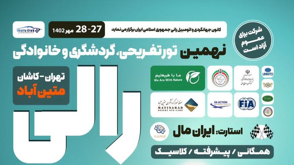 این رویداد در روز پنجشنبه مورخ 27 مهر ماه 1402 در سه کلاس همگانی، پیشرفته و کلاسیک و از محل مجموعه ایران مال تهران آغاز می شود. شرکت کنندگان در این رالی تور تفریحی، گردشگری و خانوادگی، در روز 26 مهر در جلسه توجیهی و آموزشی حضور یافته و با اصول و روش های نقشه خوانی، مسیریابی، ثبت امتیاز در ایستگاه های کنترل، مهارت های رانندگی ایمن، نشان ها و نمادهای نقشه و … آشنا خواهند شد. شرکتکنندگان در کمپ کویری متین آباد در استان اصفهان، اقامت داشته و خط آغاز روز دوم رالی نیز همین کمپ است.