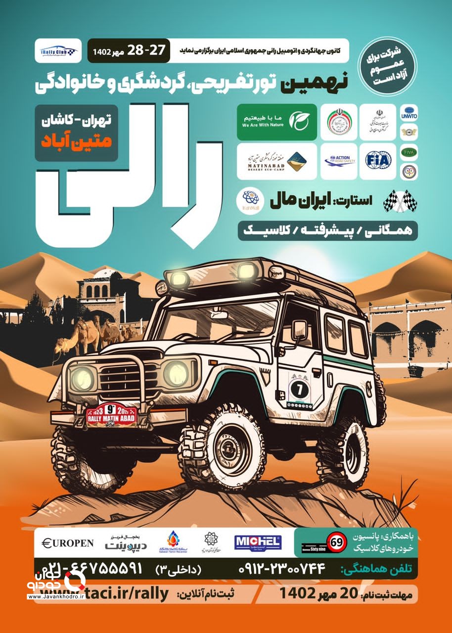 مهر 1402: کانون جهانگردی و اتومبیلرانی، رالی تور تفریحی، گردشگری و خانوادگی را با شعار «ما با طبیعتیم» به مدت دو روز در مسیر تهران- متین آباد- تهران، برگزار می کند.