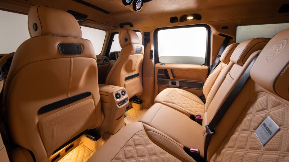 در فضای کابین برابوس 800 با ترکیب رنگی اخرایی، دوخت الماسی روکشهای چرم، روکش میکروفایبر دینامیکا برای بخش بالایی داشبورد و ترکیبی از آلومینیوم و فیبرکربن برای تریم داخلی مواجه هستیم.