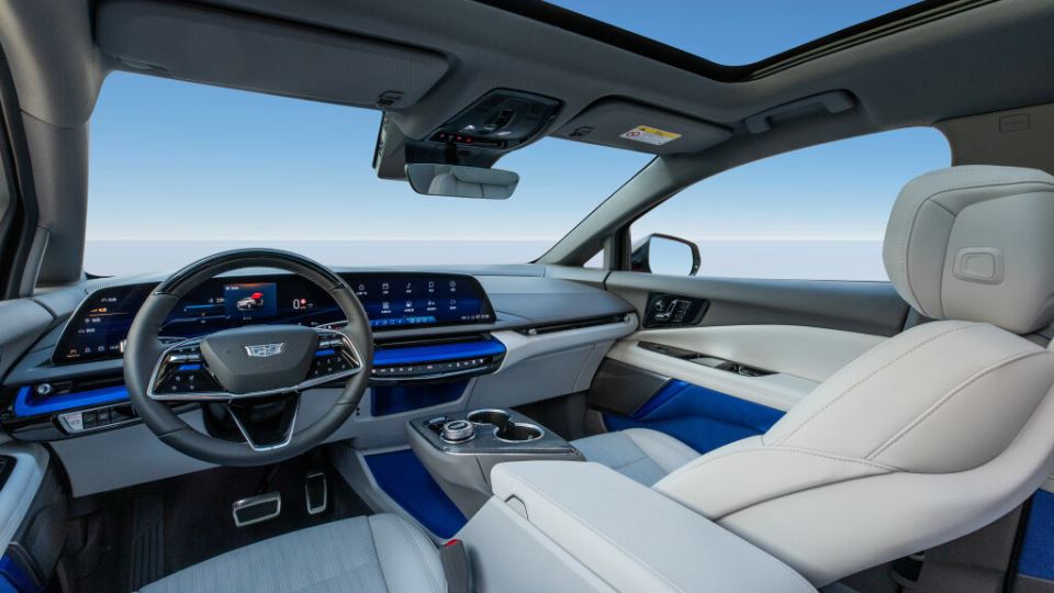 در فضای کابین کادیلاک اوپتیک با نمایشگر خمیده 33 اینچ، دوربین عقب روی آئینه میانی، نورپردازی 126 رنگ و سیستم صوتی AKG با سامانه حذف صدای مزاحم روبرو هستیم.