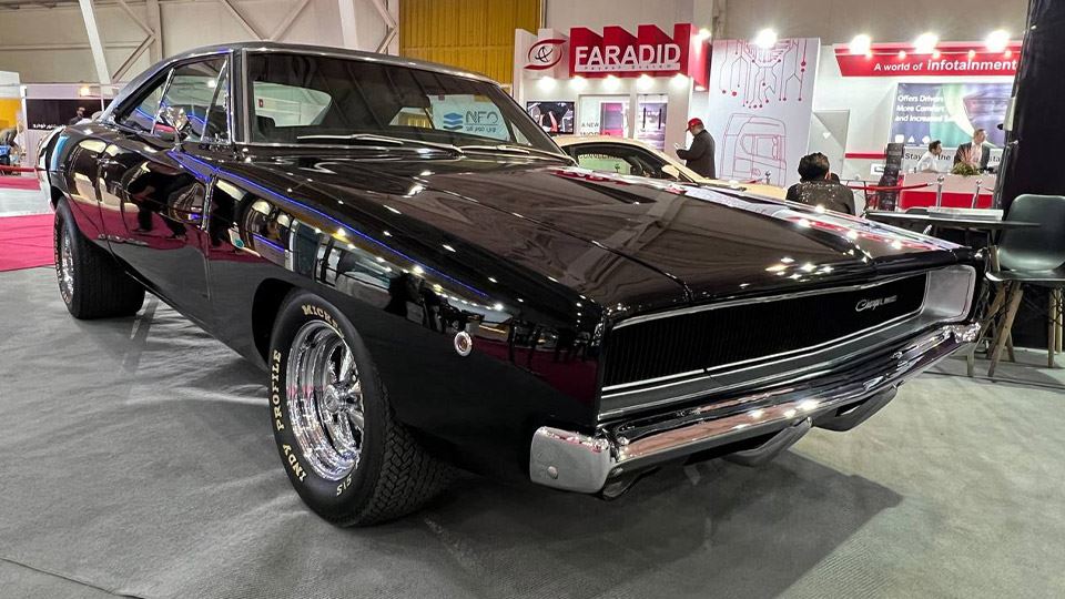 با گشتی در نمایشگاه، با تنها دوج چارجر مدل 1968 در ایران مواجه شدیم که کاور بدنه مشکی داشت و با لوازم درگ آمریکاییاش، یکی از جذابترین عضو نمایشگاه بود.
