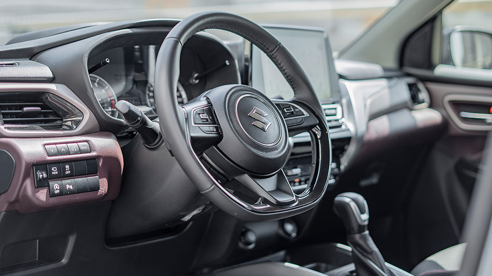 کابین فرانکس شباهت زیادی به بالنو دارد اما با جزئیات لوکستر. داشبورد دو رنگ، دریچههای تهویه دایرهای، صفحه نمایش ۹ اینچی لمسی با پشتیبانی از اندروید اتو و اپل کارپلی، و صفحه کیلومتر دیجیتال-آنالوگ جزو نکات مثبتاند. کیفیت متریال در حد خودروهای اقتصادی است اما مونتاژ مرتب و بینقص سوزوکی حس اطمینان میدهد.