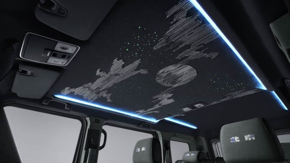 در فضای کابین بیجینگ BJ80 لونار ادیشن هم با طرحی شبیه به مرسدس G کلاس مواجه هستیم، هرچند که کیفیت این خودروها قابل مقایسه نیست.