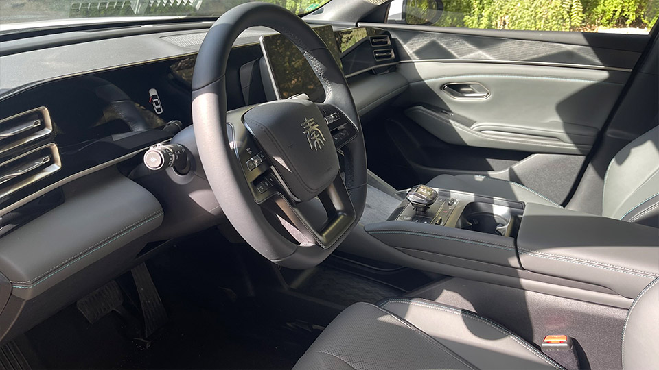 وقتی پشت فرمان BYD Qin L DM-i مینشینی و خودرو را روشن میکنی، ابتدا سکوتی نسبی را تجربه میکنی؛ موتور الکتریکی در سرعتهای پایین به تنهایی فعال است و نویز موتور بنزینی تقریباً شنیده نمیشود. در این حالت، شتاب اولیه نرم و خطی است و احساس میکنی که خودرو بیشتر به یک برقی شبیه است تا هیبرید.