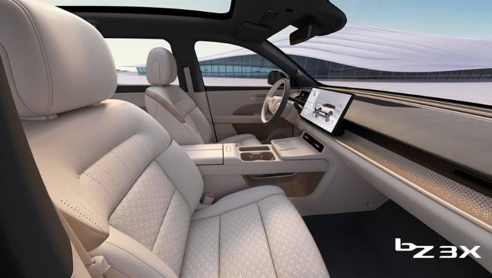 در فضای کابین تویوتا bZ3X هم با دو نمایشگر دیجیتال، کنسول میانی معلق و شارژ بیسیم مواجه هستیم.