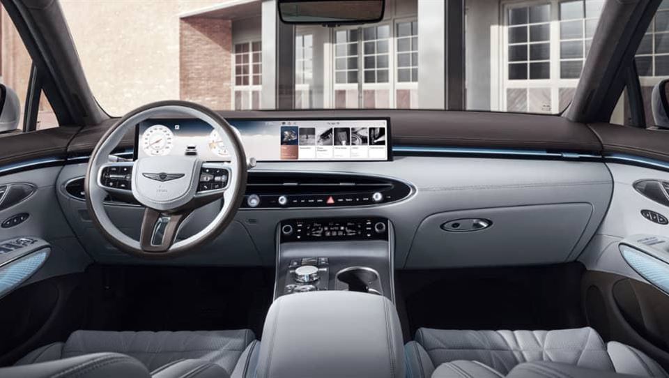 اما تغییرات اصلی، داخل خودروست. همانند جنسیس GV80 به روز شده، در این مدل نیز از نمایشگر صفحه کیلومتر و اطلاعات سرگرمی مجزا پرهیز شده و به جای آن دو، یک نمایشگر بزرگ ۲۷ اینچی تعبیه شده است. نمایشگر سیستم کنترل آب و هوا نیز با یک مدل مستطیل ساده جایگزین شده است. اما تم بیضوی کابین با وجود دریچههای تهویه بیضی، حفظ شده است. این خودروساز همچنین یک فرمان، مشابه GV80 مدل ۲۰۲۵ نصب کرده است. سیستم روشنایی محیط نیز اصلاح شده است.