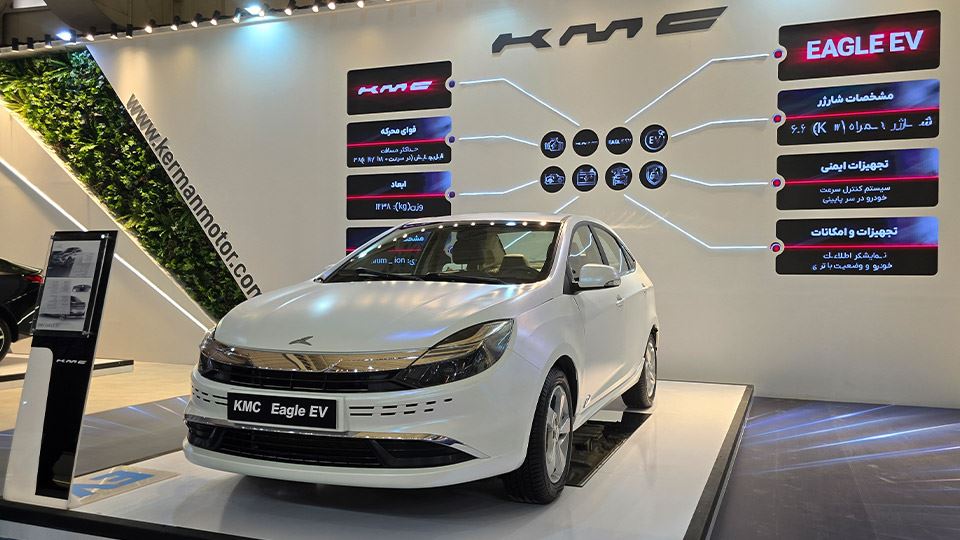 ایگل برقی دیگر محصولی بود که در غرفه کرمان خودرو با روکش سفید مات خودنمایی میکرد. کرمان خودرو این خودرو که پیشتر آن را با نام J4 EV میشناختیم، اخیرا با نام ایگل معرفی میکند. ایگل برقی دارای یک موتور برقی است که در محور جلو نصب شده است.