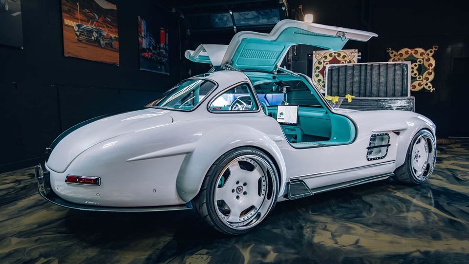 در اینجا، افراد S-Klub LA یک تسلا مدل 3 را برداشته و یک نسخه بازسازیشده مرسدس 300SL روی آن ساختهاند. بدنه از ابتدا دوباره ساخته شده و تماماً از فایبرگلاس است. از بیرون بهطور کامل یک Gull Wing دیده میشود، اما در داخل یک تسلا Model 3 با تودوزی آبی و چند پنل تغییر یافته، البته فضای تسلا را تنها در قسمت جلوی خودرو حس میکنید، زیرا خودرو بهصورت دو نفره است.