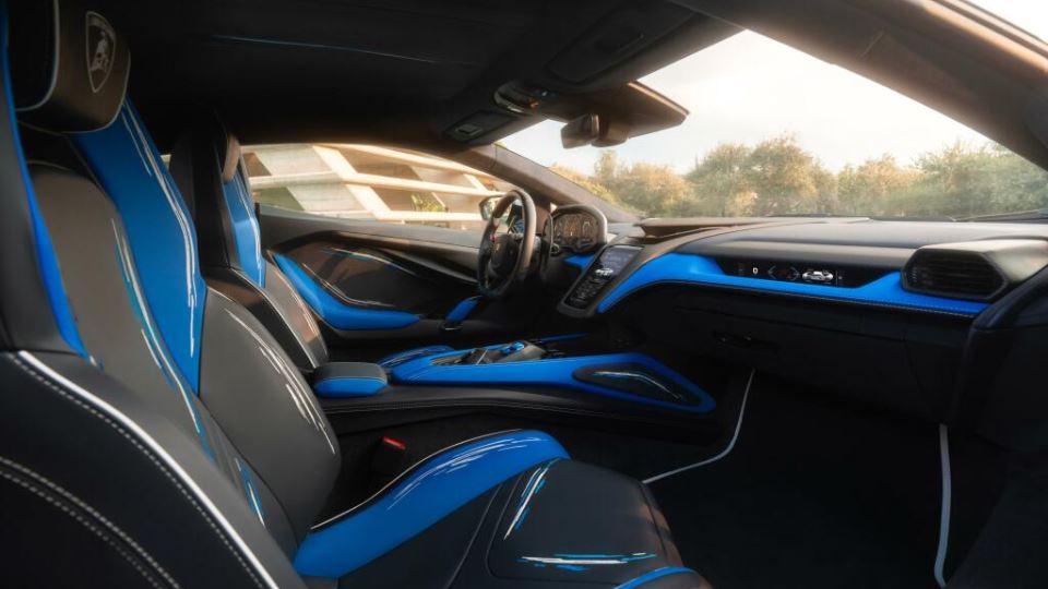 طراحان و سازندگان لامبورگینی، برای بخش کابین نیز از آب الهام گرفتهاند. بنابراین رنگ اصلی کابین، آبی Delphinus بوده و آبی Amon نیز در بخشهایی مانند پشتی صندلی، پنل درها و کنسول میانی دیده میشود. روی صندلیها، تزئیناتی با رنگ مشابه رنگ بدنه خارجی خودرو، اعمال شده است.