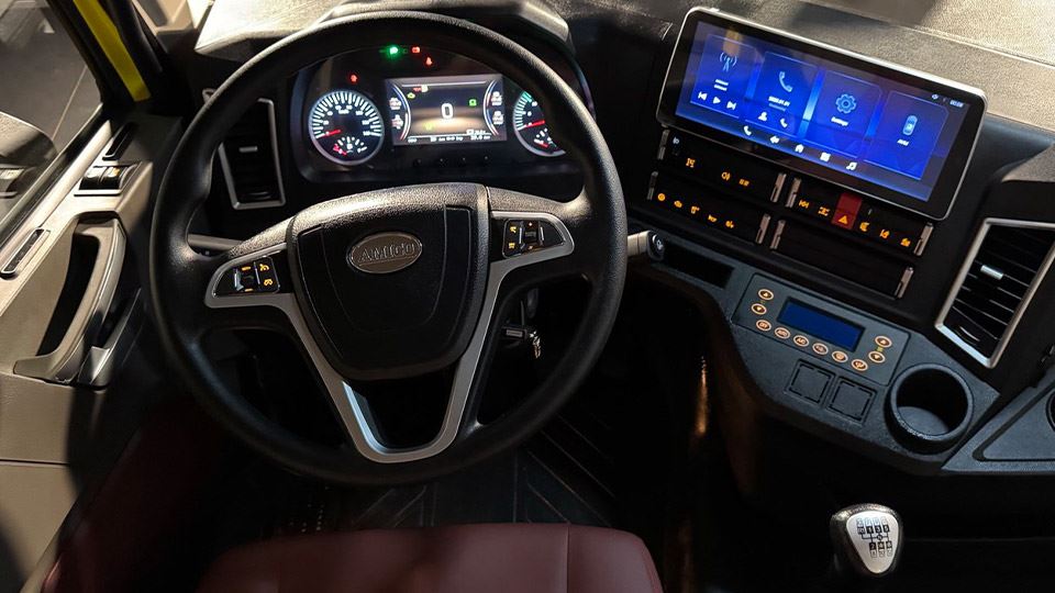 کلاستر پشت فرمان هم ترکیبی از دو نمایشگر آنالوگ برای سرعت و دور موتور و یک نمایشگر دیجیتال بزرگ برای اطلاعرسانی از وضعیت بخشهای مختلف خودرو مثل مقدار سوخت، وضعیت روغن، مقدار فشار باد موجود در تانکر و... است. ضمناً این کامیون دارای جای خواب نیز هست که البته شاید برای کاربری کمپرسی و میکسر به اندازه یک کامیون باری جادهای، کاربردی نباشد.