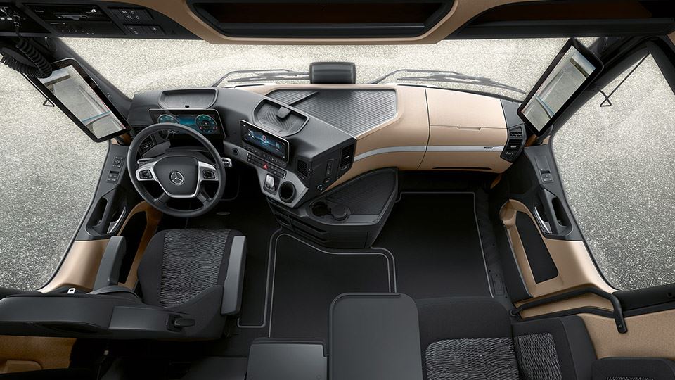 وقتی وارد اتاق آمیکو 2631D میشویم، کابین کمی برای ما آشنا به نظر میآید. چرا که داشبورد آن کاملاً از مرسدسبنز آکتروس نسل چهار و پنج الهام گرفته شده است. حتی محل قرارگیری کانالهای هوا، فرورفتگی بالای داشبورد، محل قرارگیری صفحهنمایش وسط داشبورد، محل قراردادن لیوان و... کاملاً و عیناً از داشبورد آکتروس گرفته شده است.