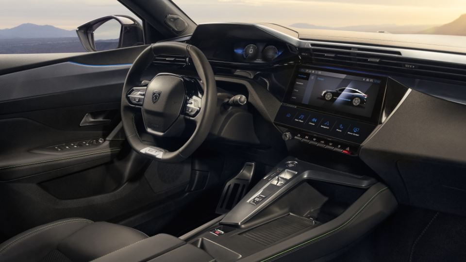 طراحی داخلی پژو E-408 براساس فلسفه Peugeot i-Cockpit شکل گرفته است. خطوط شکسته و زاویه دار داشبورد به همراه نمایشگر 10 اینچی لمسی با پشتیبانی از مسیریاب، دستیار صوتی، چت GPT و ارتباط اپل کارپلی و اندروید اتو، از مهمترین نکات قابل توجه در کابین این خودرو به شمار میآید.