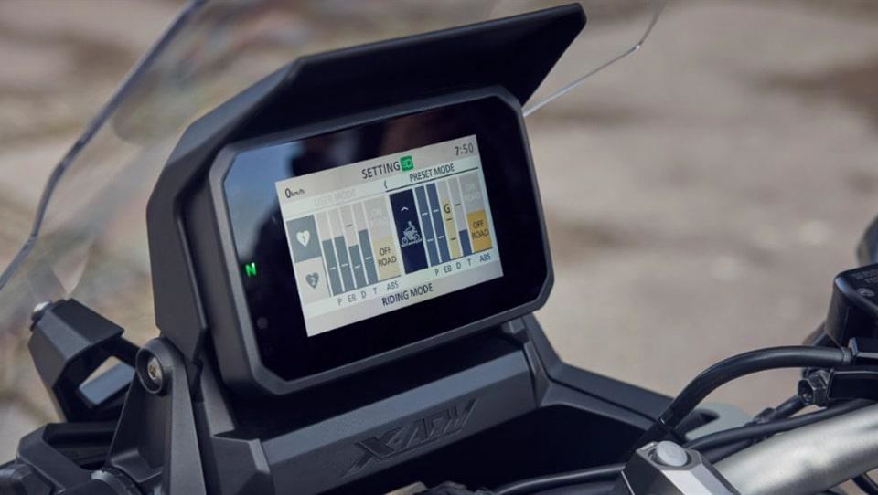 راکب این موتورسیکلت میتواند یکی از 5 حالت رانندگی استاندارد، اسپرت، بارانی، مسیر شنی و یا شخصیسازی را برای تغییر در تنظیمات قدرت، ABS و کنترل کشش انتخاب کند.
