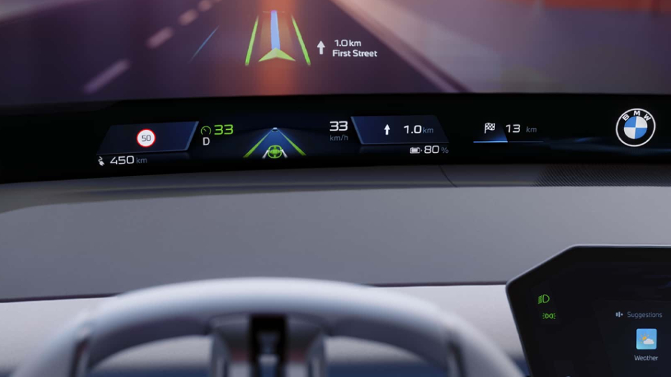 در جدیدترین نسخه از سامانه iDrive، تمرکز از نمایشگر مرکزی به سمت مقابل راننده منتقل شده است به نحوی که بسیاری از اطلاعات موردنیاز راننده روی شیشه جلو تابیده میشود. این قابلیت جدید با نام دید سرتاسری یا Panoramic Vision، در کلیه اعضای سری جدید Neue Klasse به صورت استاندارد عرضه خواهد شد.