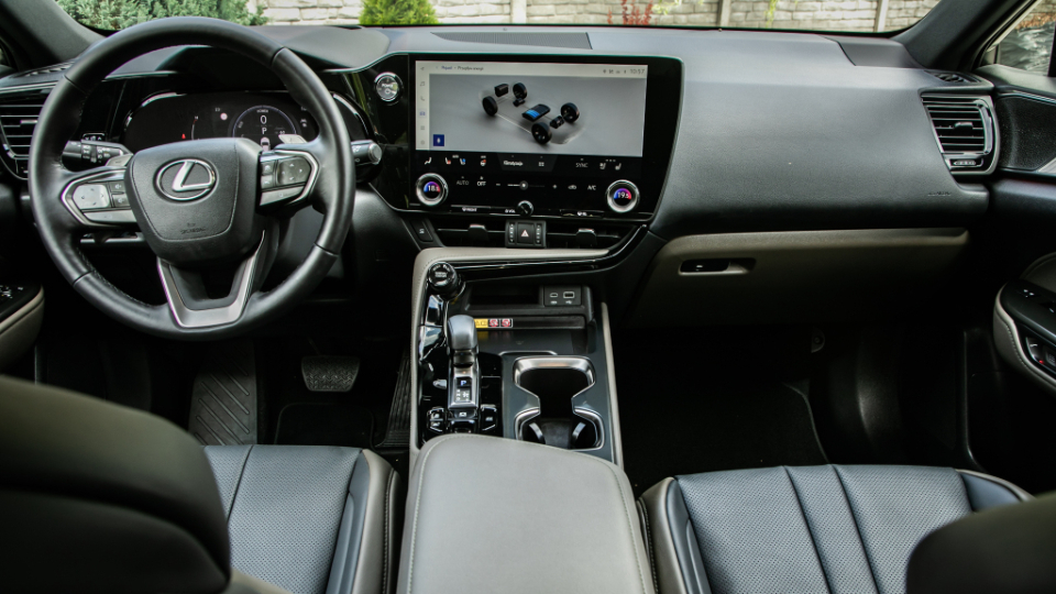 در فضای کابین لکسوس NX اورتریل با روکش چرم مصنوعی به رنگ مشکی و قهوهای روشن مواجه هستیم. از دیگر ویژگیهای این تیپ میتوان به جزئیات چوبی روی پوشش داخلی درها و حالت رانندگی Trail اشاره کرد، که برای رانندگی روی سطوح لغزنده پیشبینی شده است.