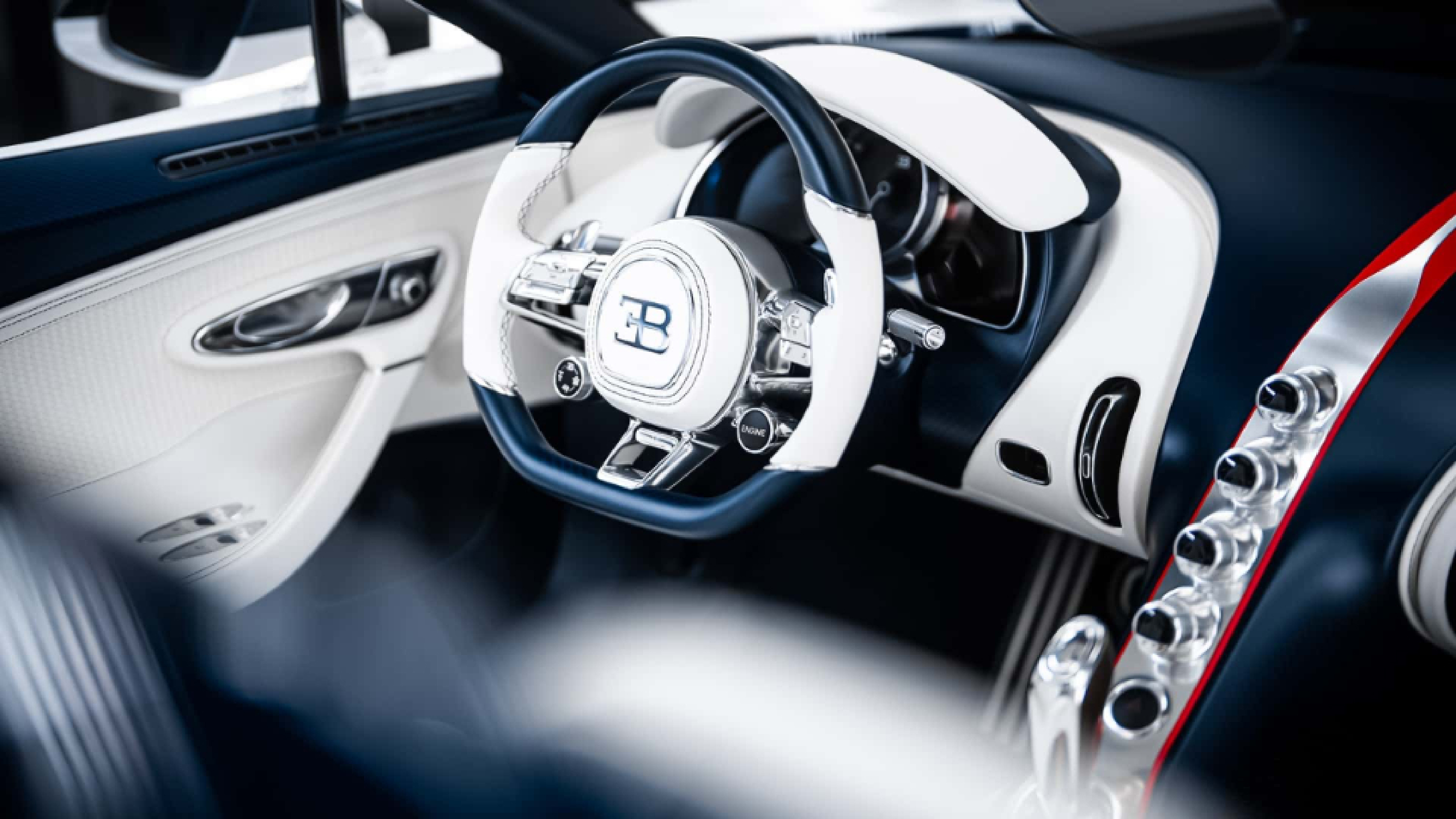 یکی از این دو مسافر آمریکا، لباسی به رنگ مشکی کربن و دیگری تنپوشی به رنگ سفید Glacier با جزئیات آبی و قرمز را به همراه دارد. کابین نمونه مشکی با آبی روشن Bugatti و فضای داخلی نمونه سفید با رنگ مشابه بدنه تزئین شده است. حتی در روکش پیشرانه این خودروها نیز میتوان شخصیسازی را مشاهده کرد، چراکه در نمونه مشکی با جزئیات مات و در نمونه سفید رنگ با پوشش فیبرکربن و جزئیات آلومینیوم روبرو هستیم.