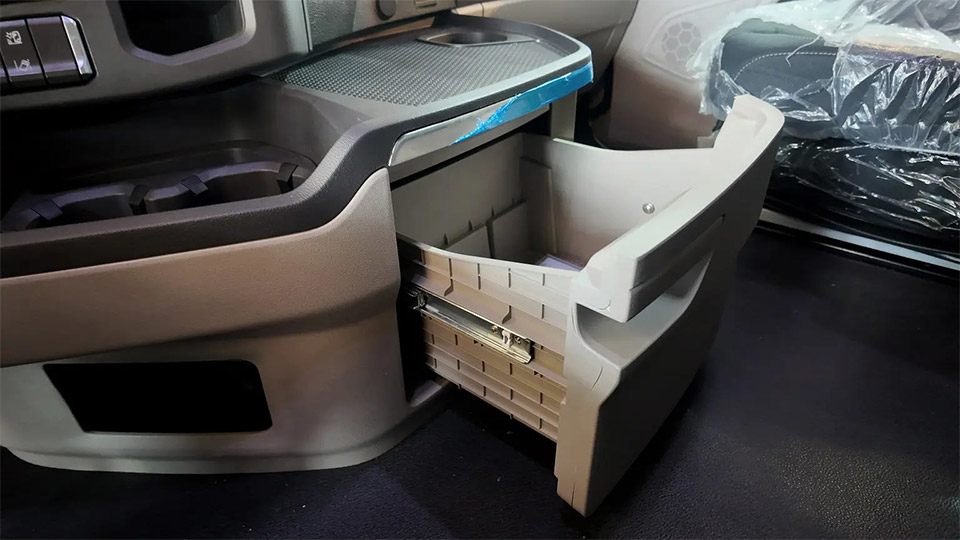 درون کابین، شباهت زیادی به طراحی مدلهای اسکانیا مشاهده میشود که هماهنگی و زیبایی آن قابل توجه است. کیفیت مواد به کار رفته و مونتاژ این خودرو در حد بالایی است. صندلیها به خوبی طراحی شدهاند و با وجود کف صاف و تخت کابین، فضای داخل اتاق بسیار جادار به نظر میرسد.
