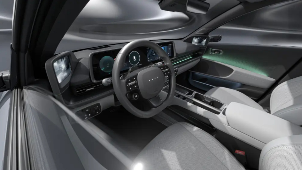 هرچند تصویر کاملی در دسترس نیست، اما میتوان طراحی جدید فرمان و کنترلهای تهویه با نمایشگر بزرگتر را نیز تشخیص داد. نمونه حاضر در تصاویر، هیوندای آیونیک 6 مدل 2026 بازار کره جنوبی است، که به جای آینههای جانبی، دوربینهای جانبی به همراه نمایشگرهای گوشه داشبورد را به همراه دارد.