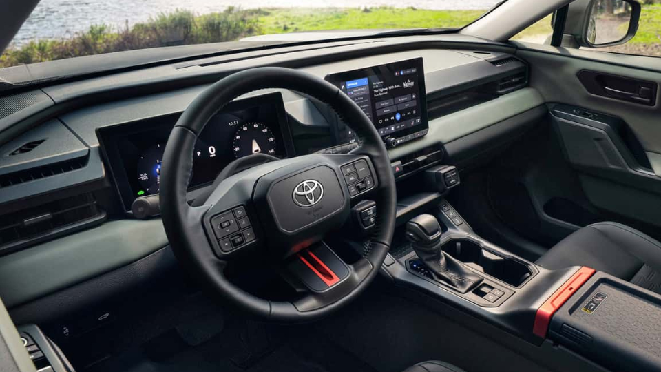 تویوتا راوفور 2026 احتمالا برای رقابت با چینیها، تمرکز زیادی بر صفحهنمایش دارد چراکه نمایشگر لمسی 10.5 اینچ و صفحه نشاندهنده 12.3 اینچی بهصورت استاندارد ارائه میشوند. خریداران میتوانند نمایشگر لمسی 12.9 اینچ را هم در برخی تیپها انتخاب کنند. رابط کاربری نمایشگر با عملکرد سریعتر و واکنش بهتر، از ارتباط بیسیم اپل کارپلی، اندروید اتو و اتصال همزمان دو دستگاه با بلوتوث، پشتیبانی میکند. این خودرو برای اولین بار، دکمه ثابت برای کنترل در پارکینگ را به همراه دارد.