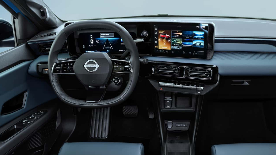 ارتباط نسل جدید نیسان میکرا با رنو 5 در فضای داخلی کاملا واضح است. در کلیه تیپهای این خودرو، نمایشگر لمسی 10.1 اینچ با چرخش به طرف راننده، تعدادی دکمه فیزیکی در زیر دریچههای تهویه و نورپردازی در 48 رنگ دیده میشود.
