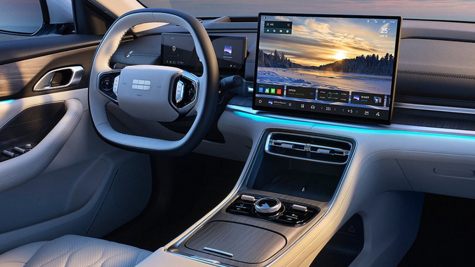 در کابین جیلی گلکسی A7 میتوان فرمان دوشاخه، دو نمایشگر دیجیتال، شارژر بیسیم، تعدادی دکمه و اهرم گردان تعویض دنده را مشاهده کرد.