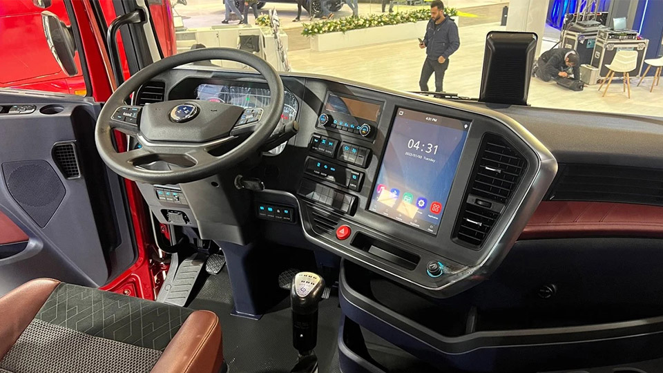 داشبورد تا حدودی شبیه به مرسدسبنز آکتروس است و یک صفحه نمایشگر به صورت ایستاده در وسط آن دیده میشود که این سبک نمایشگر تا حالا در خودروهای تجاری کشورمان دیده نشده است. داشبورد این کشنده نکته خاصی ندارد. اما قرارگرفتن دو فضای بزرگ برای قراردادن وسایل در وسط داشبورد نیز تا حالا در کمتر خودرو تجاری دیده شده است.