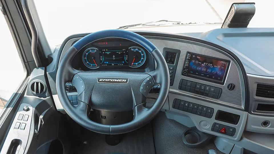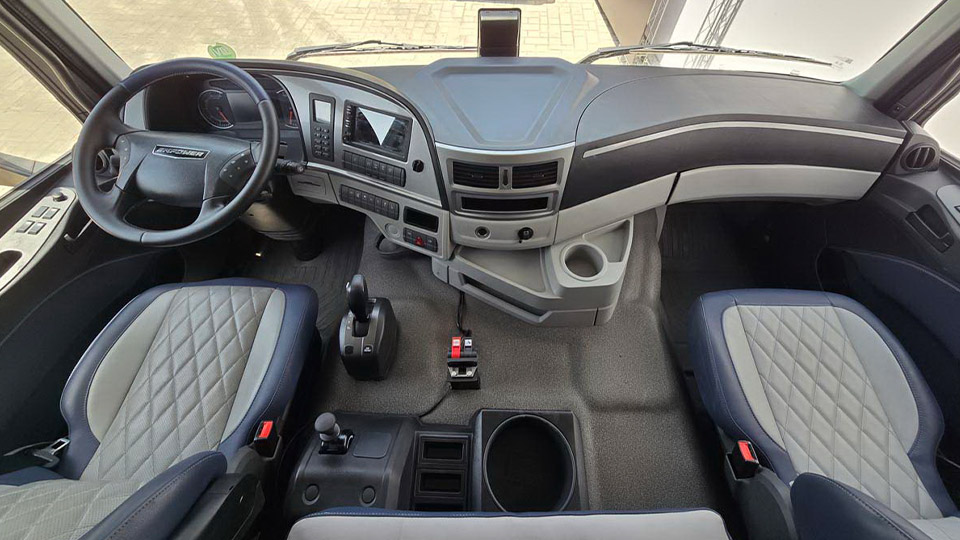 داخل این کمپرسی با نمونه کشنده آن تفاوتی ندارد. همان داشبورد که از روی مرسدسبنز آکسور کپی شده است و البته ارگونومی قابل قولی دارد را مشاهده میکنیم و البته کیفیت ساخت و جنس مواد آن نیز خوب است.