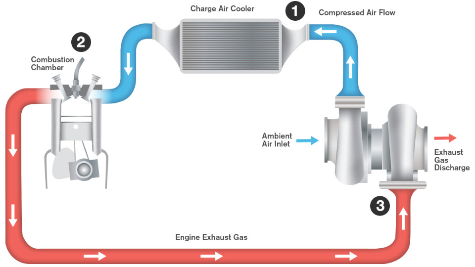 یک دستگاه مکانیکی نسبتا کوچک است که روی موتور نصب میشود و به یاری گازهای خروجی اگزوز، هوای بیشتری را به صورت فشرده به موتور وارد میکند. با افزایش اکسیژن ورودی به پیشرانه، احتراق قویتری اتفاق میافتد و قدرت بیشتری تولید خواهد شد.