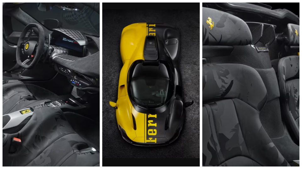 بدنه ششصدمین نمونه از فراری دیتونا SP3 با ترکیب رنگ مشکی و زرد و لوگو تایپ Ferr و ari در دو انتهای بدنه، تزئین شده است، ترکیبی که قبلا مشاهده نکردهایم.