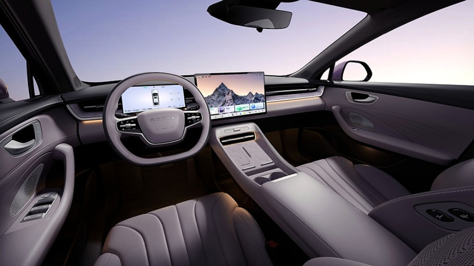 در فضای کابین رووی M7 با فرمان D-شکل، صفحه نشاندهنده 10.25 اینچ، نمایشگر لمسی 15.6 اینچ با دستیار هوش مصنوعی Doubao AI، سیستم صوتی با 6 بلندگو و سانروف مواجه هستیم.