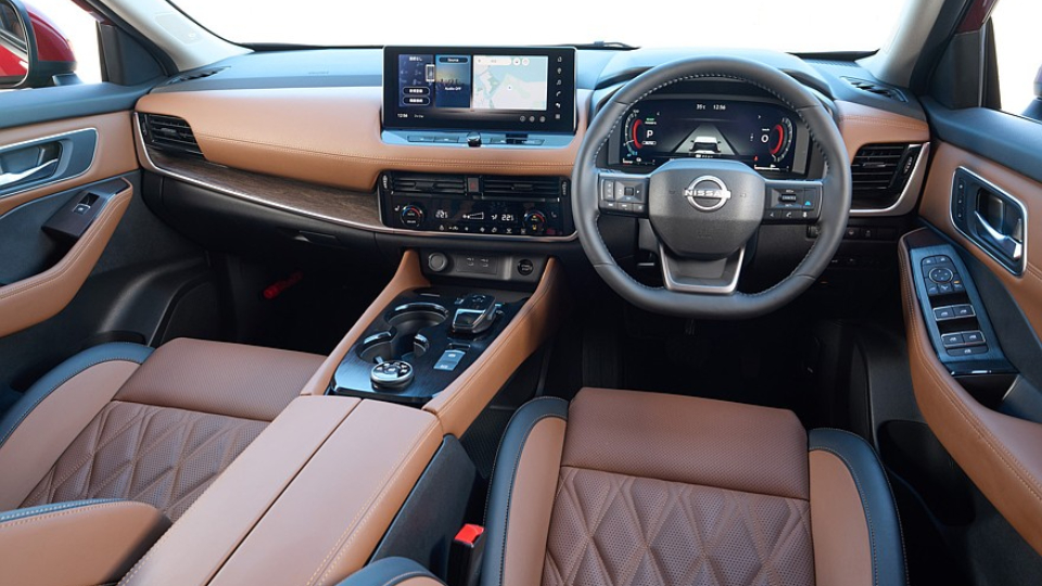 در فضای کابین هم با تغییر رنگ بخش بالایی داشبورد به مشکی و شارژر بیسیم در کنسول میانی مواجه هستیم. روکش سفارشی چرم ناپا هم از بژ به قهوهای تغییر رنگ داده است. نمایشگر لمسی 12.3 اینچ با رابط کاربری NissanConnect و سامانه هوشمند دید 3 بعدی اطراف بدنه خودرو، همراه میشود.