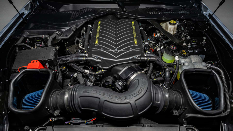 RTR ماستنگ Spec 5 به پیشرانه 5 لیتری کایوتی V8 مجهز شده است، که به لطف سوپرشارژر 3 لیتری Whipple Stage 2، اینترکولر HD Race و اگزوز اسپرت، 870 اسببخار قدرت و 895 نیوتنمتر گشتاور تولید میکند. این رقم حتی از خروجی نیرومندترین نسخه ماستنگ یعنی GTD هم بیشتر است. خریدار میتواند گیربکس شش سرعته دستی یا 10 سرعته اتوماتیک را انتخاب کنند.