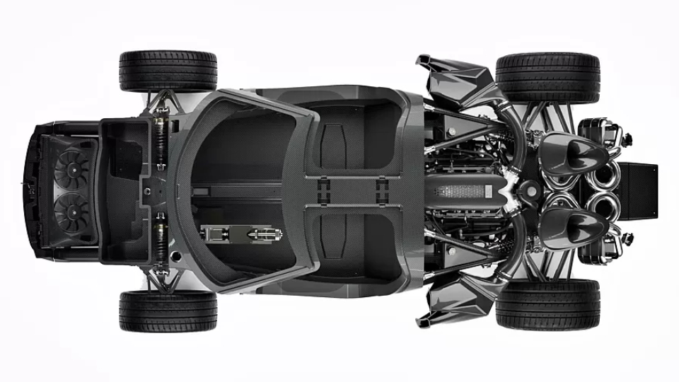 بدنه این خودرو براساس شاسی مونوکوک فیبرکربنی مشابه خودروهای کلاس LMP1 طراحی شده و ساب-فریم جلو و عقب از فیبرکربن و اتصالات آنها نیز از فلز ساخته شده است. درهای گالوینگ، از دیگر ویژگی های ظاهری این خودروی 1.200کیلوگرمی بشمار میآید.