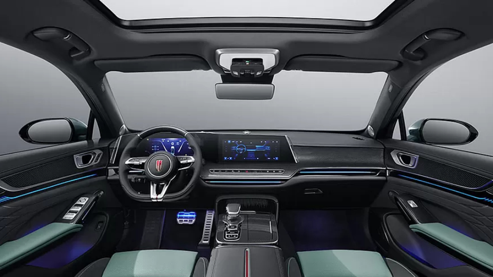 برخلاف بدنه، کابین هونگچی H9 دستخوش تحولات اساسی شده است. در بخش میانی داشبورد، از کلیدهای گردان کنترل تهویه خبری نیست و دو نمایشگر مرکزی و کلاستر هم زیر پوششی واحد قرار گرفتهاند. در تیپ پرچمدار هونگچی H9 یعنی Executive، روکش ناپا و آلکانترا، وکیوم درها و نمایشگر لمسی و شارژر بیسیم ردیف عقب، دیده میشود.