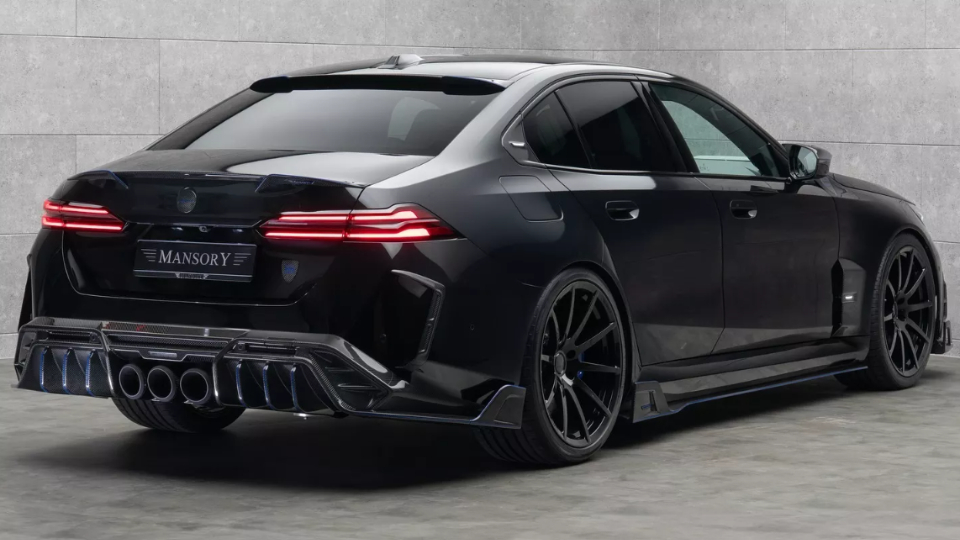 در بخش عقب، با طراحی بسیار عجیب دیفیوزر مواجه هستیم که سه خروجی اگزوز را در میان خود جا داده است. میتوان گفت منصوری در طراحی این بخش از محصول جدید خود، از هوندا سیویک تایپ R الهام گرفته است. رینگهای 22 اینچ FV.10 مشکی براق با تایر باریک، تغییرات ظاهری این سدان آلمانی را تکمیل میکند.