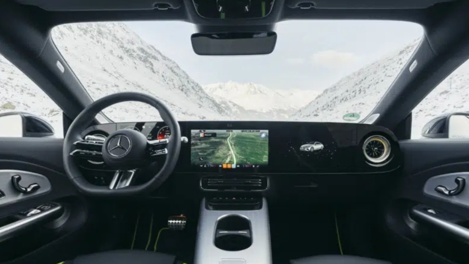 فضای داخلی به نسل چهارم سیستم اطلاعات سرگرمی MBUX و رابط کاربری MB.OS به همراه هوش مصنوعی گوگل و مایکروسافت، مجهز شده است. مجموعه سفارشی MBUX Superscreen شامل کلاستر 10.25 اینچ، نمایشگر مرکزی 14 اینچ و نمایشگر 14 اینچ سرنشین جلو، از مسیریابی گوگل مپز هم پشتیبانی میکند. گنجایش محفظه بار این خودرو نیز 405 لیتر اعلام شده است.