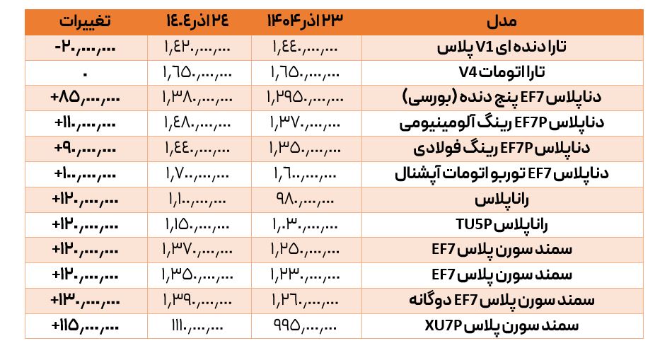 پرواز دسته جمعی قیمتها در خانواده سمند؛ افزایش قیمت سورن در 25 دی 1404