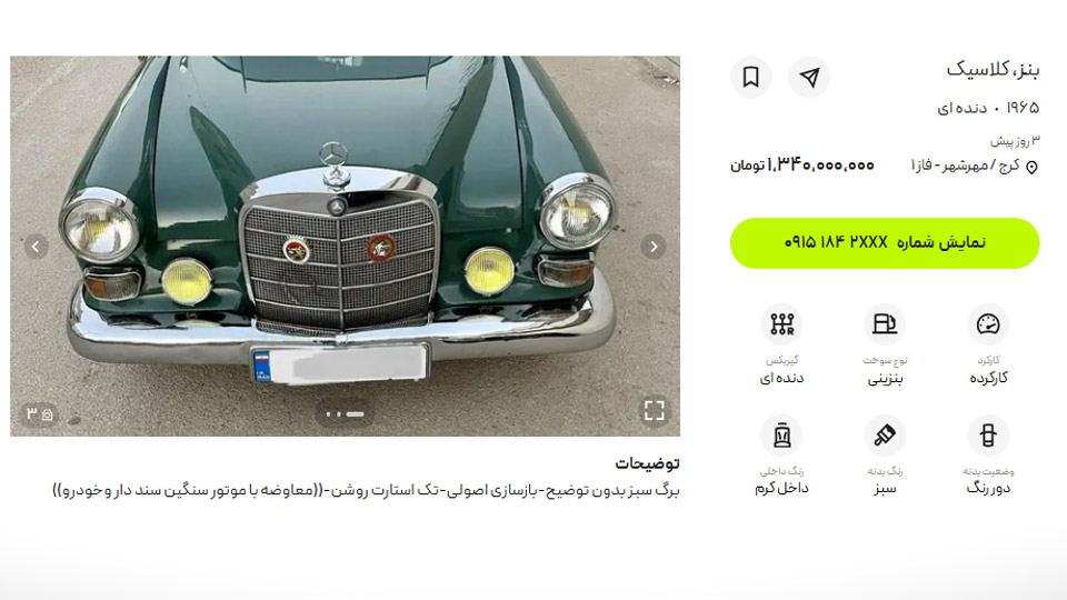 آگهی بنز کلاسیک 1965 که در باما دیده میشود، صرفاً یک مرسدس قدیمی نیست. در بازار کلاسیکها، ارزش واقعی بیش از هر چیز به اصالت قطعات، سلامت ساختار و میزان دستنخورده بودن خودرو وابسته است.