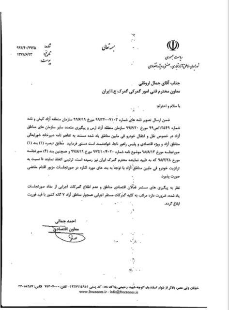 »» نامه درخواست شورای عالی مناطق آزاد ««