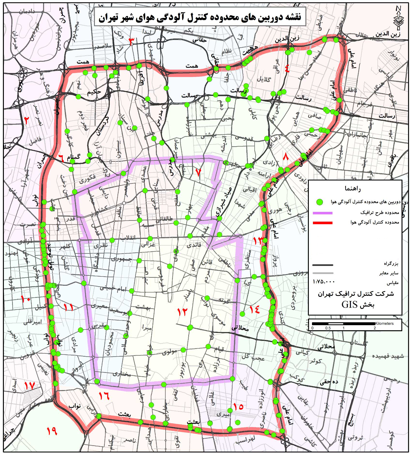 همچنین توجه داشته باشید که دایرههای رنگی مشخص شده در نقشه طرح ترافیک تهران (نقشه فوق)، محل نصب دوربینهای پلیس را نشان میدهند.