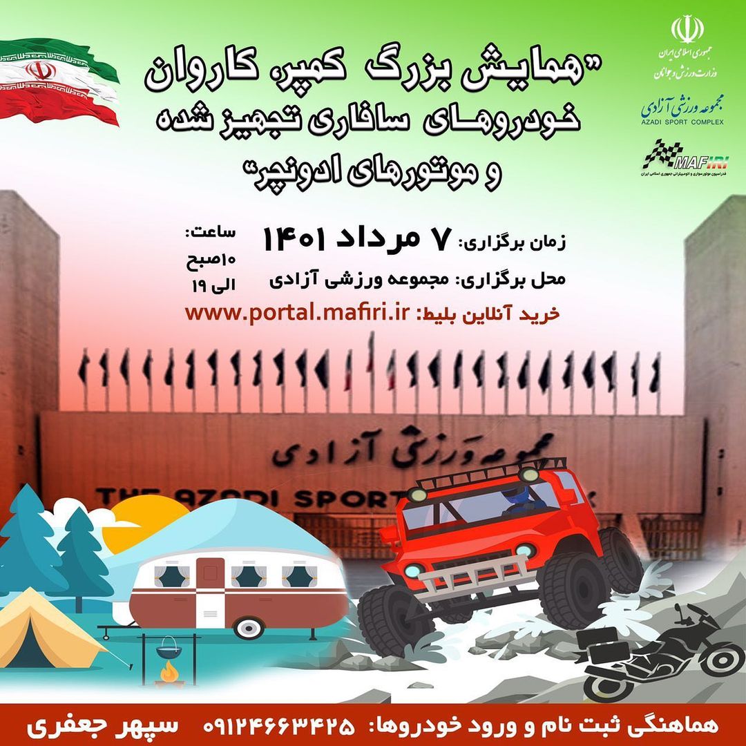 با اعلام کمیته تورینگ و سافاری فدراسیون، همایش بزرگ خودروهای کمپر، کاروان، سافاری و موتورسیکلتهای ادونچر در مردادماه 1401 برگزار میشود.