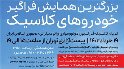 - گردهمایی تبریز: موزه خودرو کلاسیک؛ از ساعت 12 لغایت 15