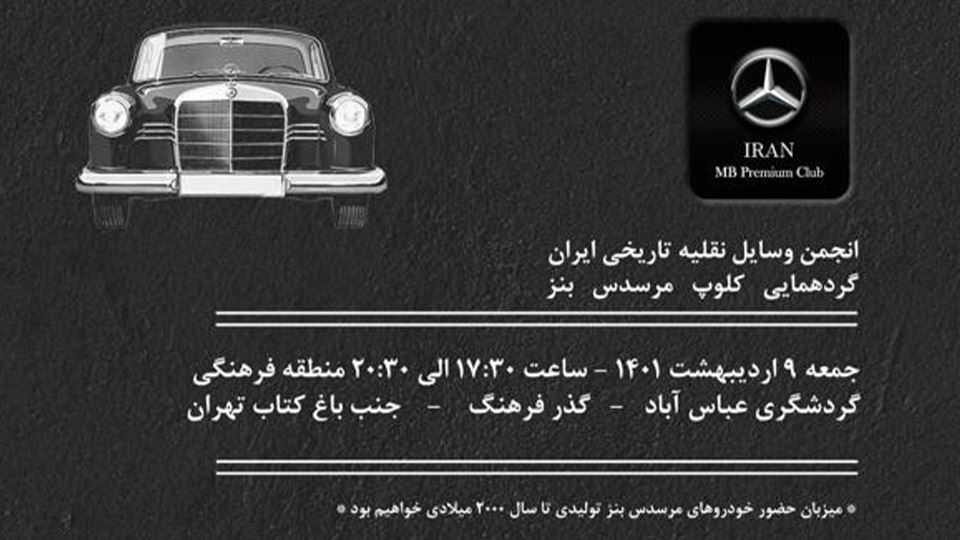 با اعلام کلوپ بنز و با حمایت کانون جهانگردی و اتومبلیرانی، اولین گردهمایی «خودروهای مرسدس بنز کلاسیک» در روز جمعه 9 اردیبهشتماه 1401 از ساعت 17:30 لغایت 20:30 در محل گذر فرهنگی گردشگری عباسآباد تهران برگزار میشود. این گردهمایی فقط برای مرسدسهایی است که تولید آنها قبل از سال 2000 میلادی باشد.